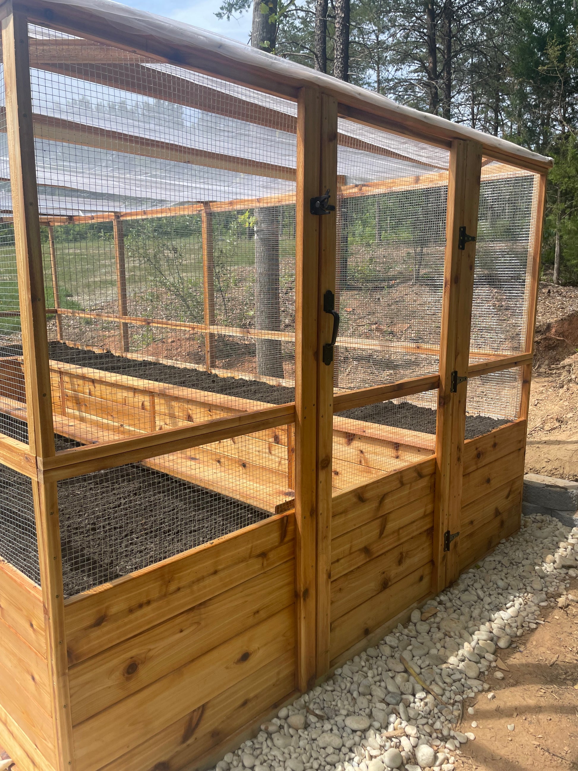 Our systems are hand crafted here in Virginia and each one is unique, we are not mass producing ours. Price includes set up/assembly. We do offer to fill beds with soil (soil sold separately). We use superior hardware, better quality hardware cloth and / or bird netting to help guard against pesky critters from eating up your garden. We also preserve each garden system with linseed oil to help extend that natural cedar beauty.