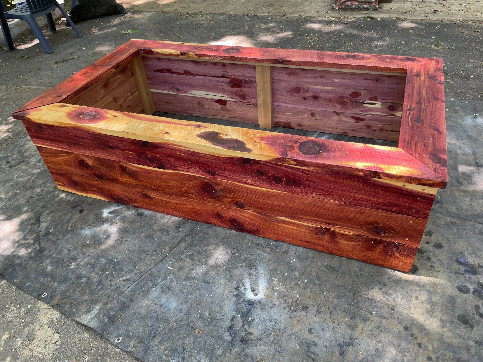 This is our line of aromatic red cedar garden beds. We will make any design, even custom orders, and your own designs. Just provide your desired width, height, and depth along with any other customizations.
